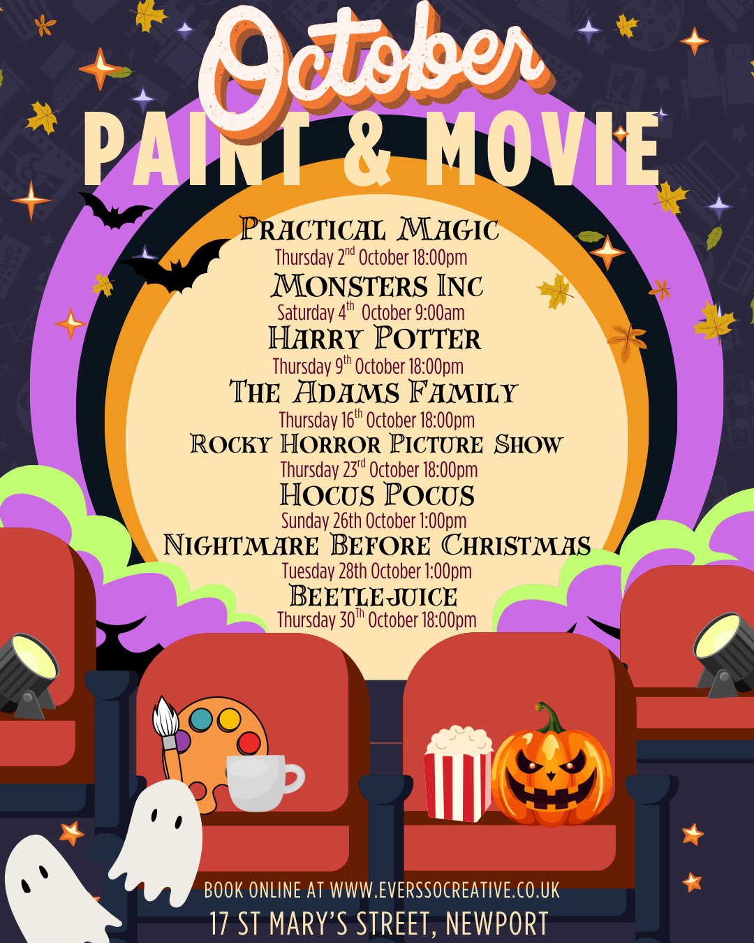 Movie and Paint sessions are an extra £5 for evenings and £2 for our 9am and 2pm daytime viewings.