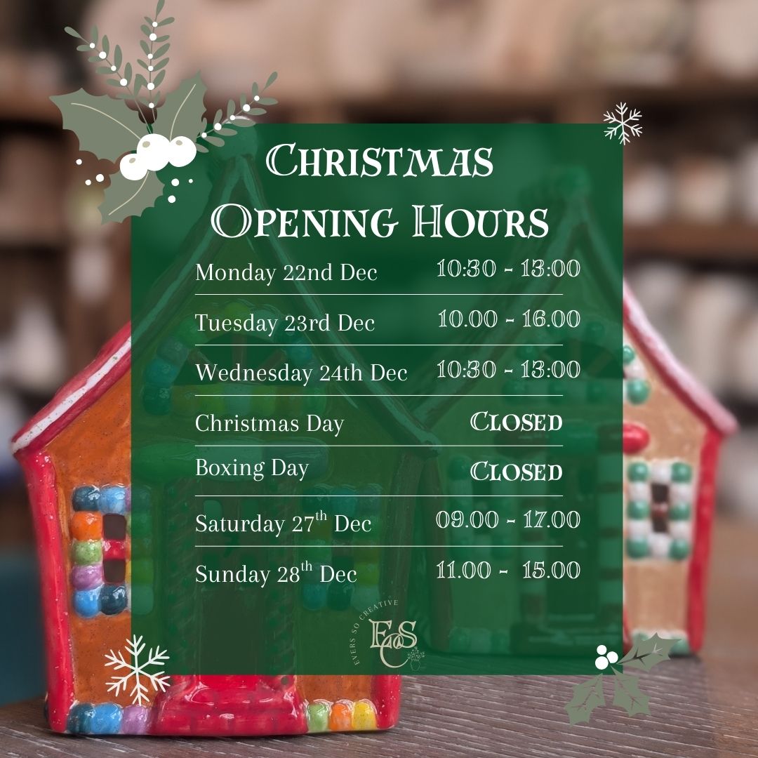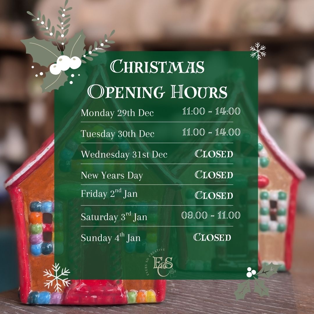 Please check out our Festive Opening times before visiting the studio.